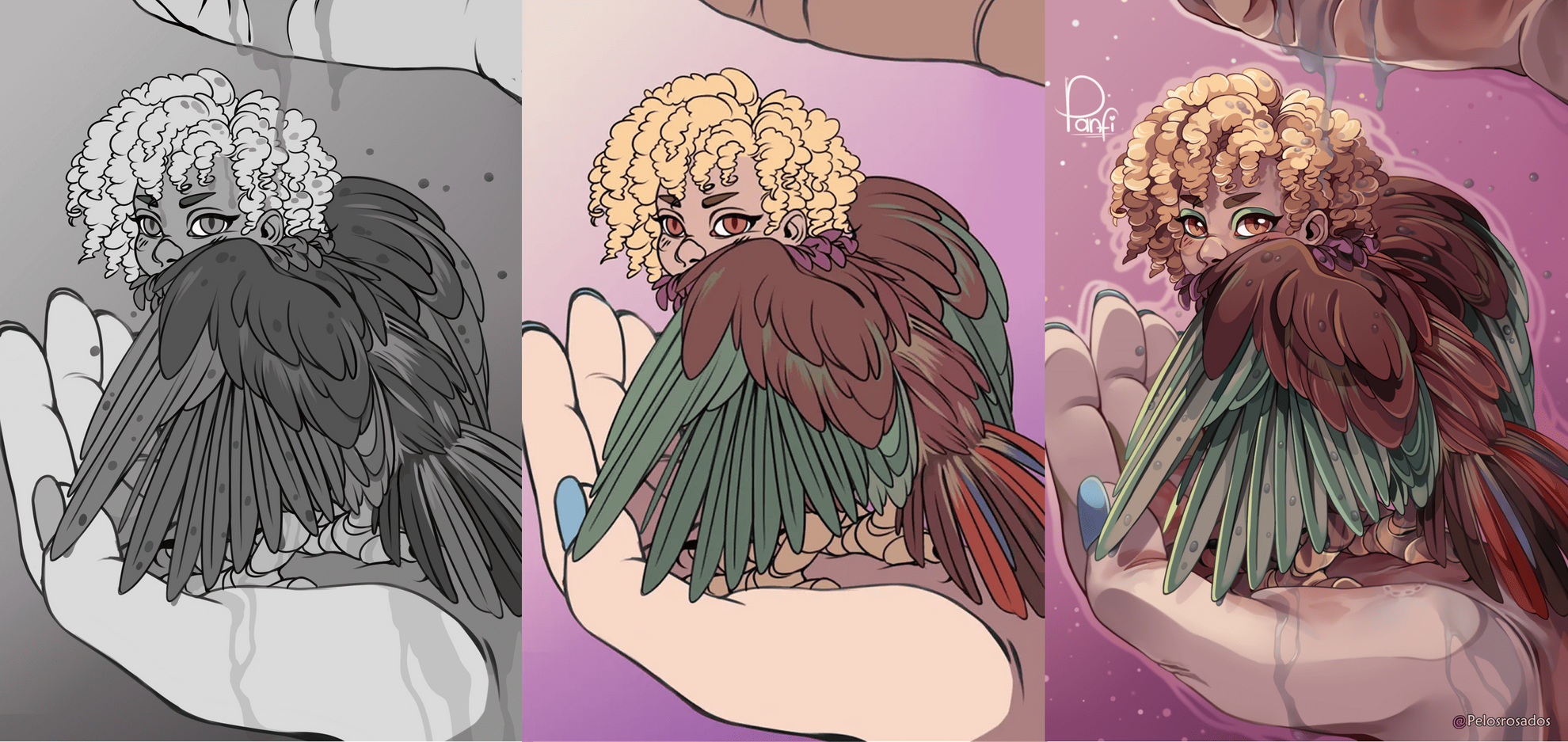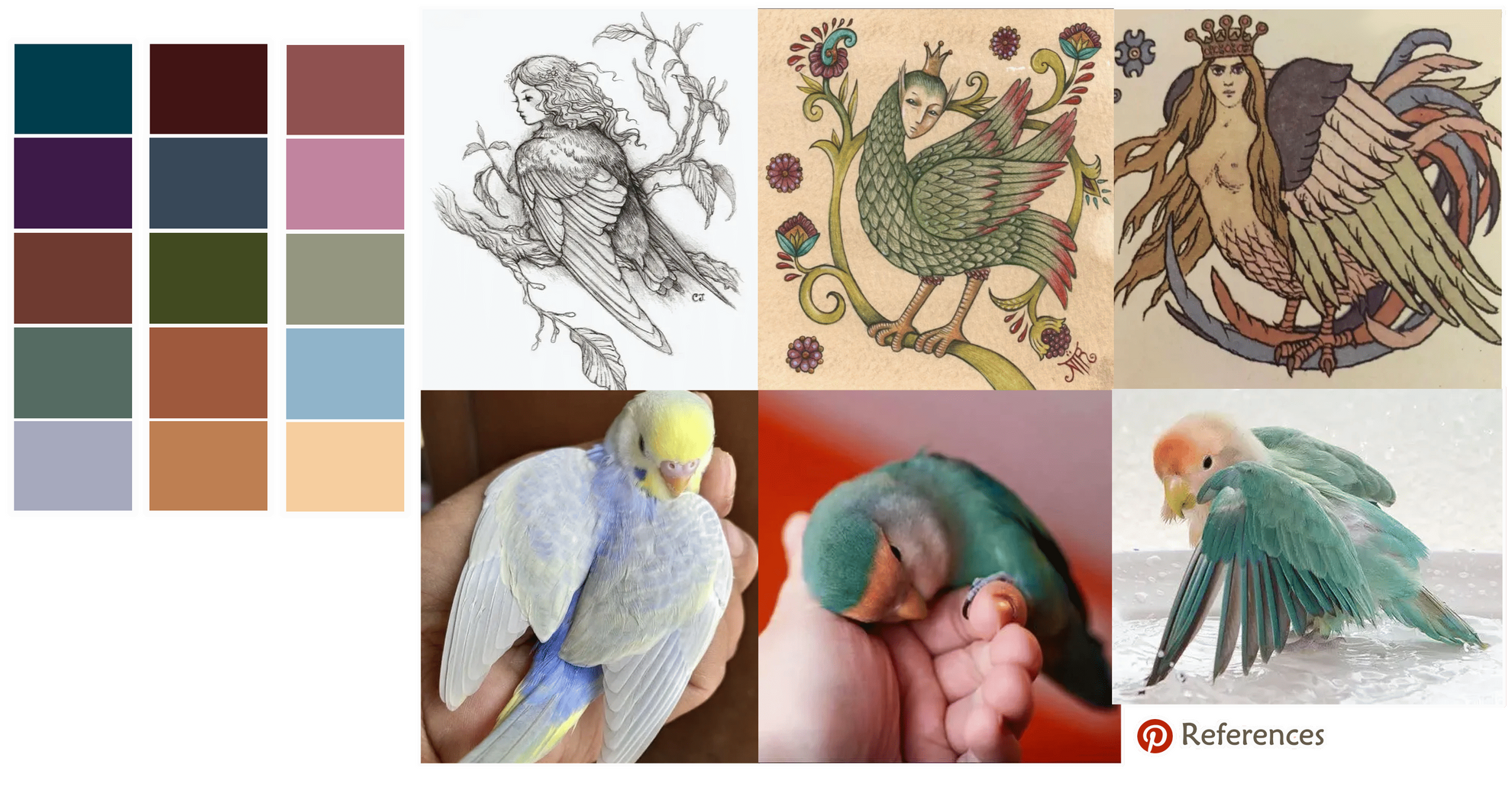 Little Harpies originated from a creative exercise in which we had to combine an animal with a superpower. When I drew a parrot and the power of fire, I imagined a hero who was half-human, half-parrot, which led me to discover the mythological figure of the harpy.This discovery inspired the series, which merges Greek mythology with the anatomy of the agapornis, a small parrot widely known as a pet.